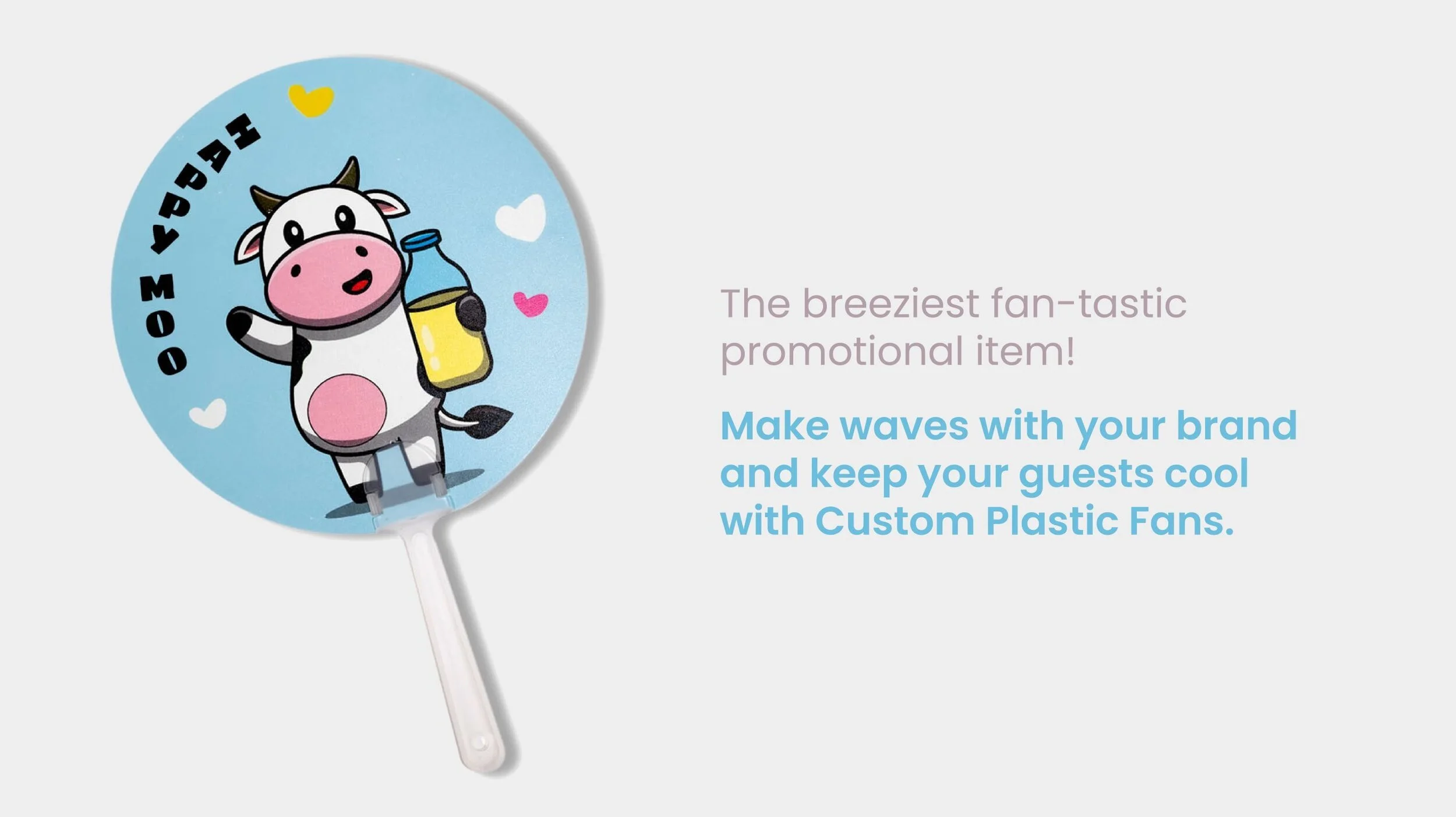 Our custom hand fans are made from PP/PVC plastic that is lightweight and durable.